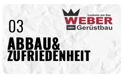 Höchste Sicherheitsstandards und minimale Beeinträchtigung: Sicherheit hat bei der Gerüstbau Weber GmbH oberste Priorität. Unsere Gerüste werden fachgerecht nach den neuesten Sicherheitsvorschriften aufgebaut und regelmäßig überprüft. Wir legen großen Wert darauf, die Beeinträchtigungen während des Auf- und Abbaus so gering wie möglich zu halten und arbeiten stets professionell und rücksichtsvoll.